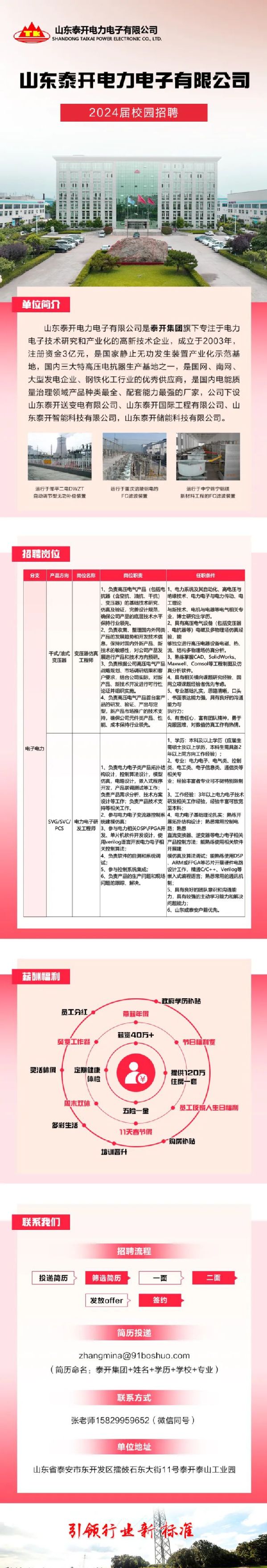 正在阅读:山东泰开电力电子有限公司2024届校园招聘公告